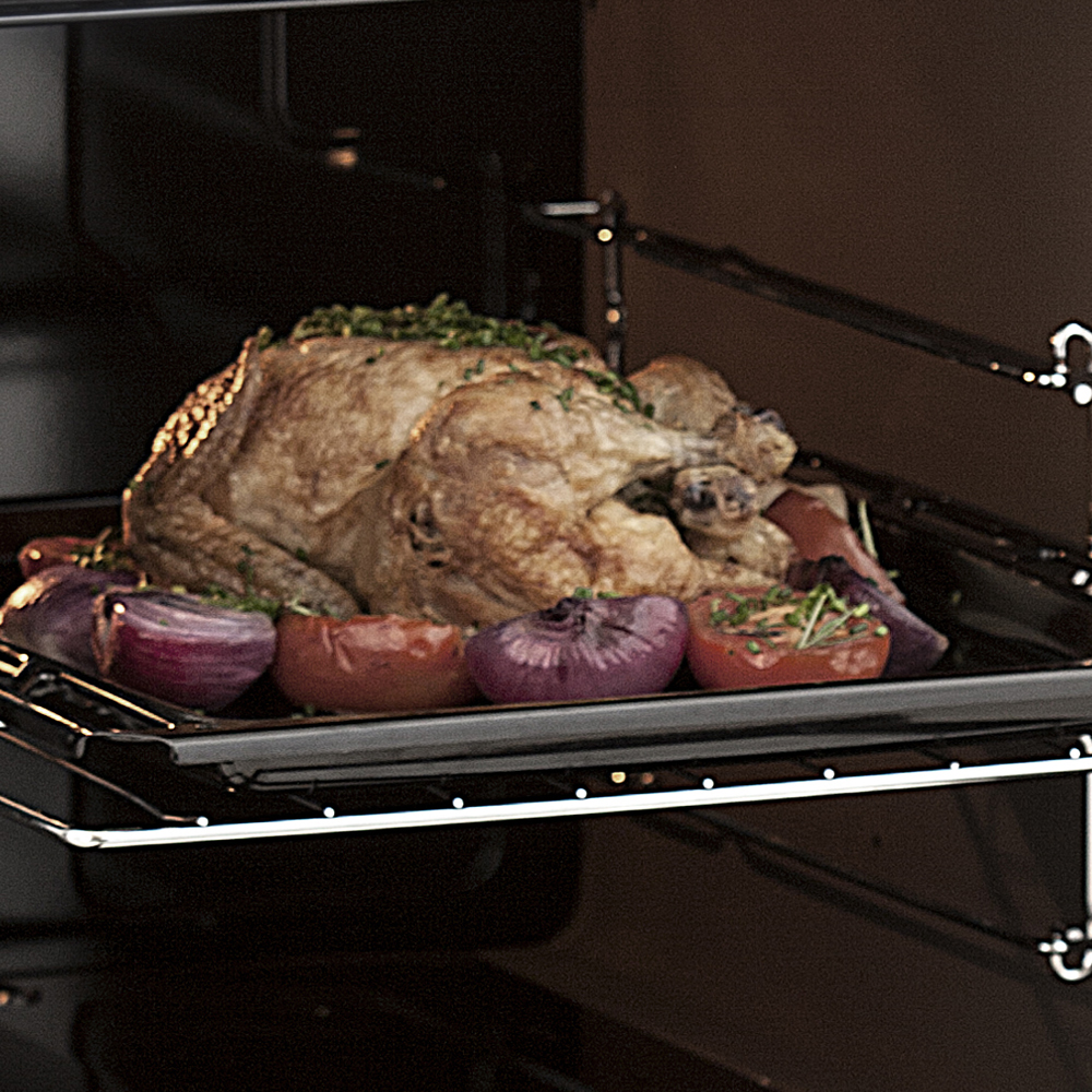 Eficiencia energética AA. Grill eléctrico. Encendido electrónico en horno y hornallas. Horno autolimpiante con luz interior y parrilla autodeslizable. Mesada de acero inoxidable. Tapa de cristal templado. Puerta de horno con doble vidrio espejado. Cajón parrilla deslizable. Origen: Argentina.