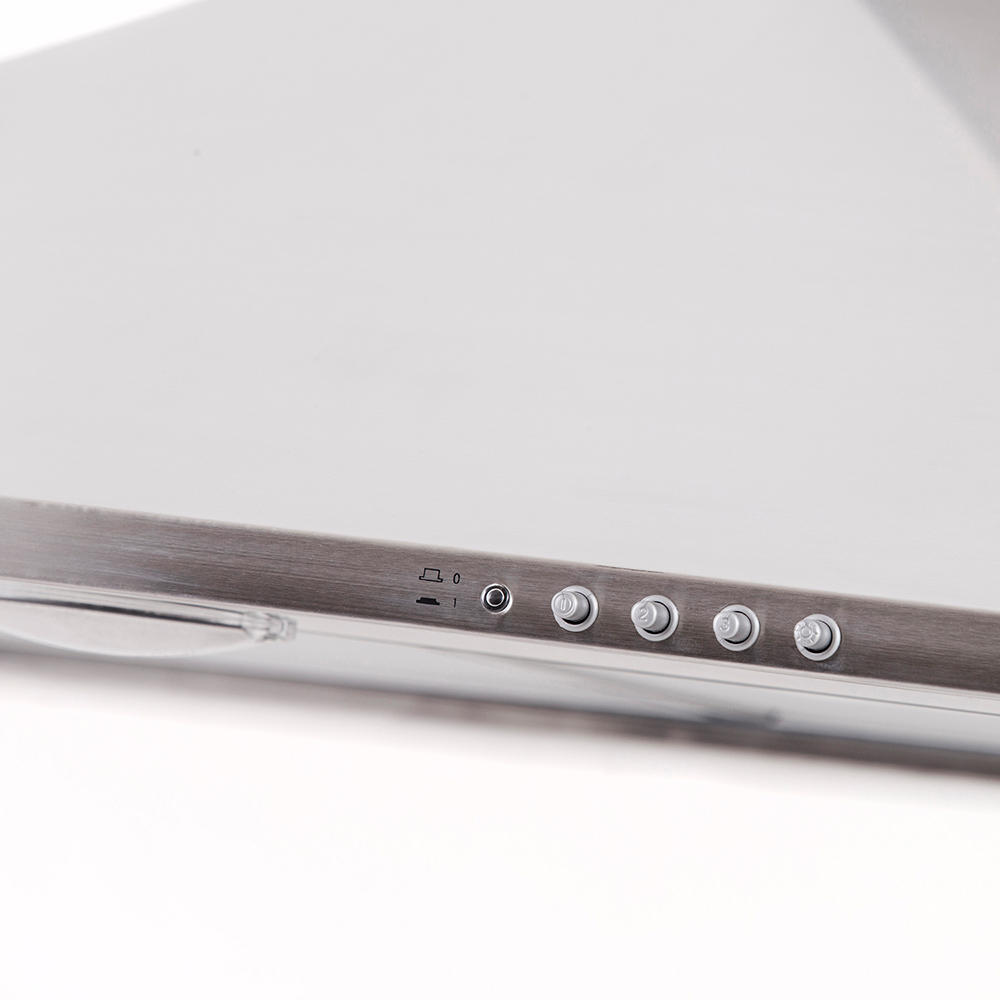 Campana de pared. Gran caudal de extracción. 3 niveles de velocidad de extracción. Iluminación halógena incorporada. Filtros antigrasa metálicos lavables. Acero Inoxidable y vidrio. Capacidad de extracción 510m3/hora. Origen: Argentina.