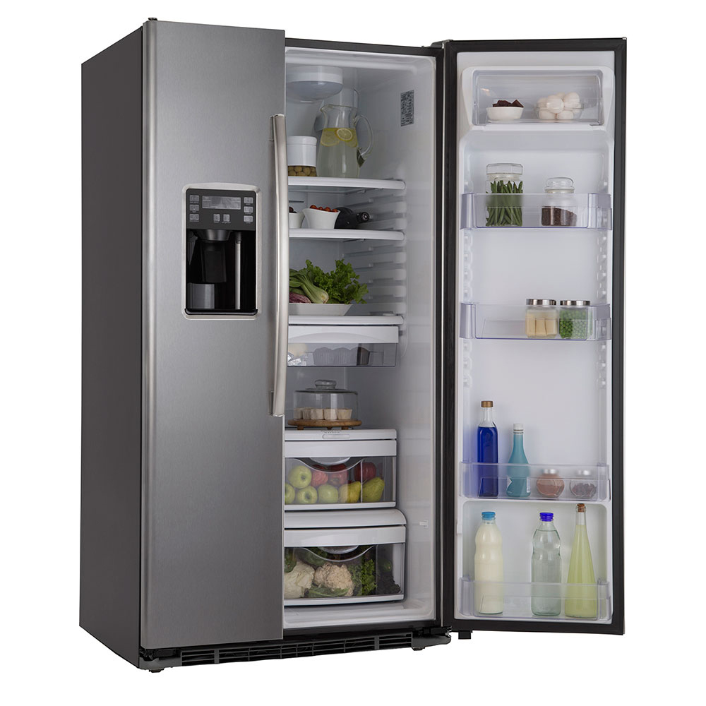 Heladera Side by side. No Frost. Color acero inoxidable. Dispenser de agua. Fabricadora de hielo. Seguro para niños. Alarma puerta abierta.