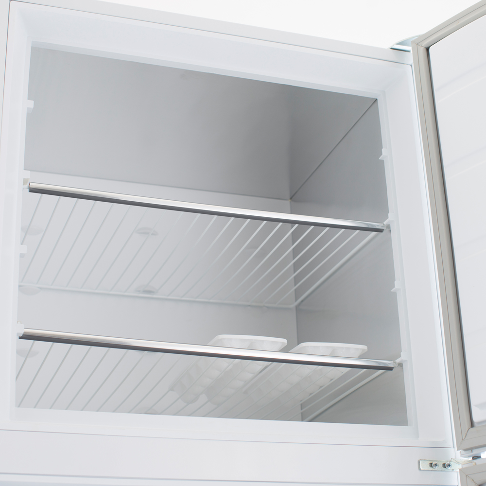 Heladera cíclica. Eficiencia A. Color Blanca. Capacidad bruta 394 litros. Estantes regulables en altura en freezer y refrigerador. Anaqueles en contrapuerta para botellas y alimentos regulables en altura. Crisper para frutas y verduras. Luz interior.