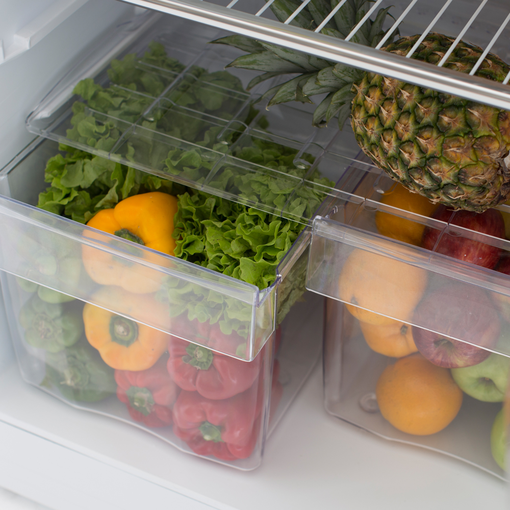 ¡Su doble cajón para frutas y verduras facilita la tarea de ordenar tu heladera!