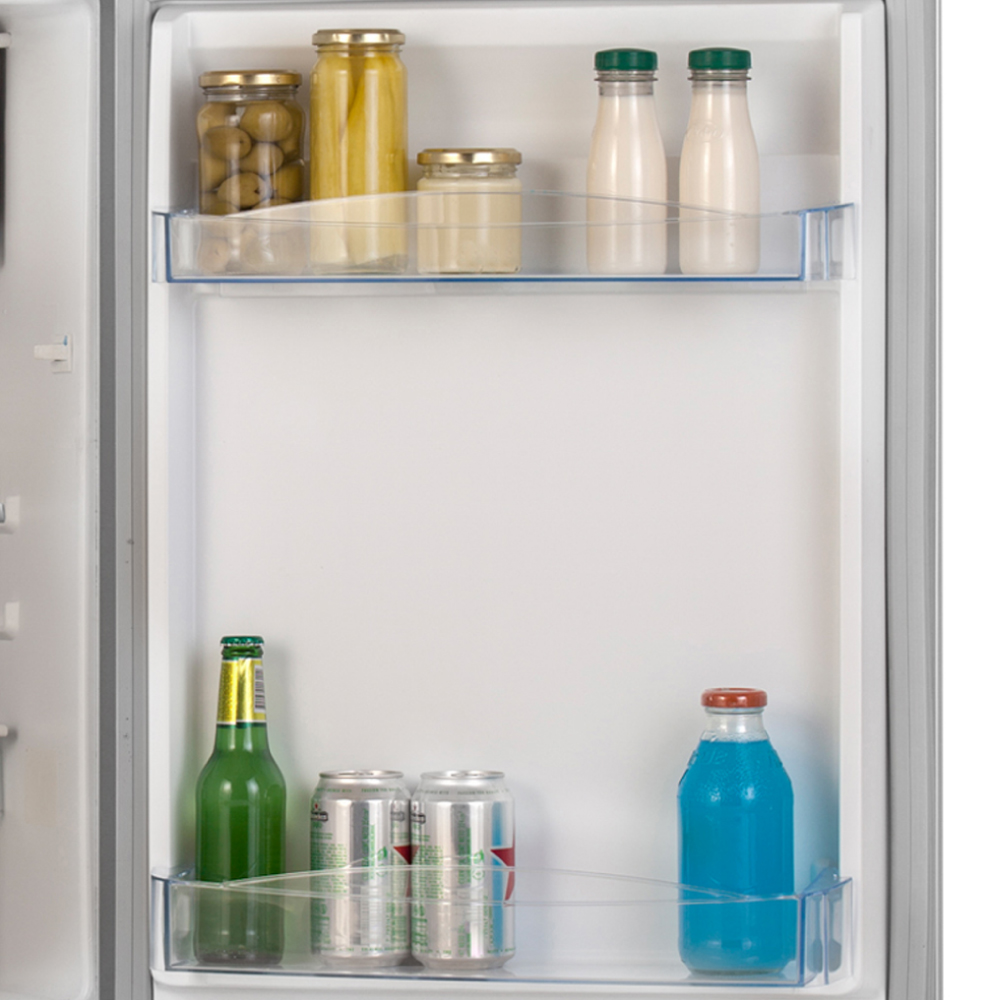 Heladera bajo mesada 1 Temperatura. Eficiencia energética A. Color Silver. Capacidad bruta 120 litros. Luz LED. Estantes de vidrio templado. Anaqueles en contrapuerta. Cajón para frutas y verduras. Origen Argentina.
