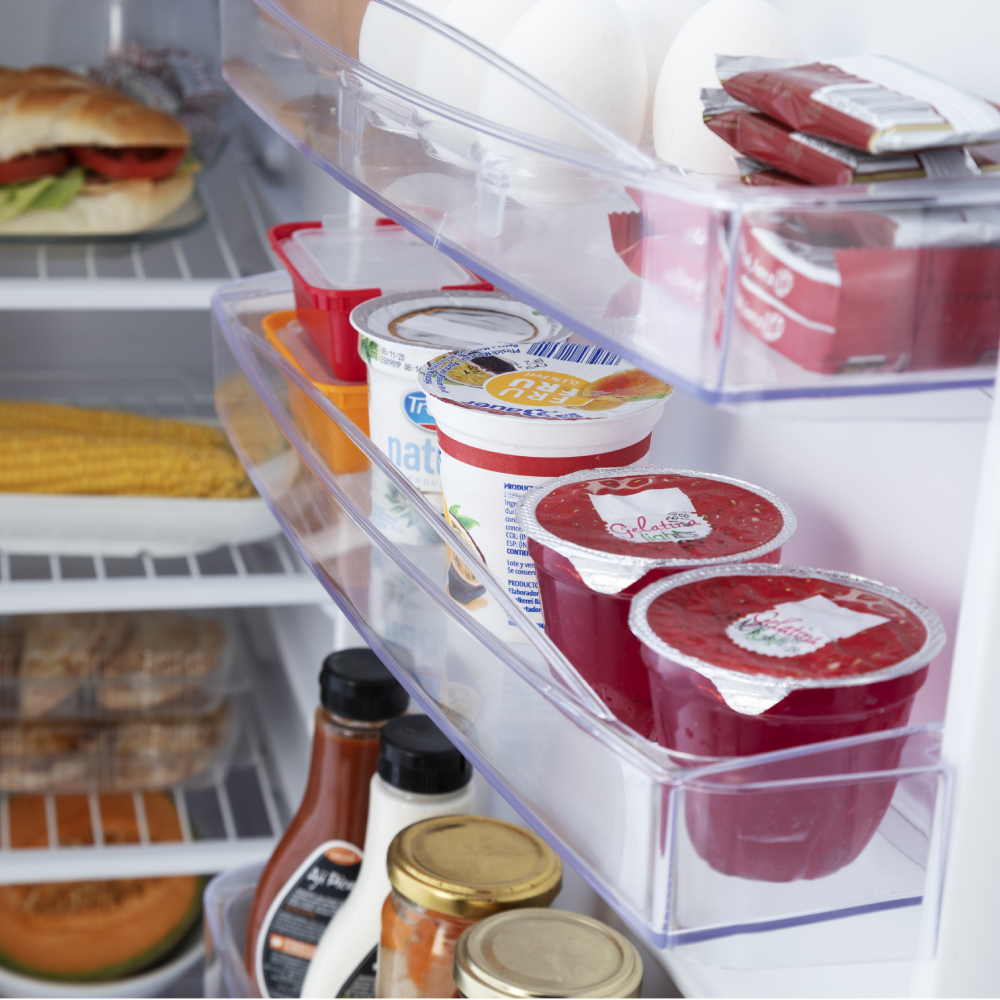 Cuenta con anaqueles y estantes regulables en altura, ¡que se adaptarán a las necesidades de guardado de tu heladera!