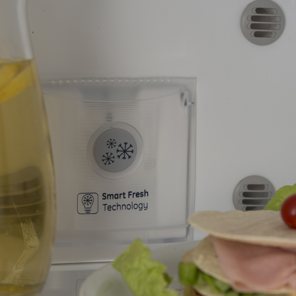 Sistema No Frost Inteligente. Asegura la conservación de sus alimentos, garantizando que el aire frío circule de manera homogénea por todo el refrigerador. Dispone de salidas de aire en varios niveles, y un sensor que activa el flujo de aire.